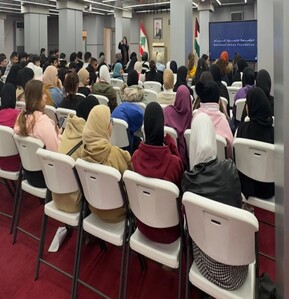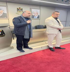 During the visit of Amjad Institutes to the Mahmoud Abbas Foundation in the Martyr Yasser Arafat Hall
